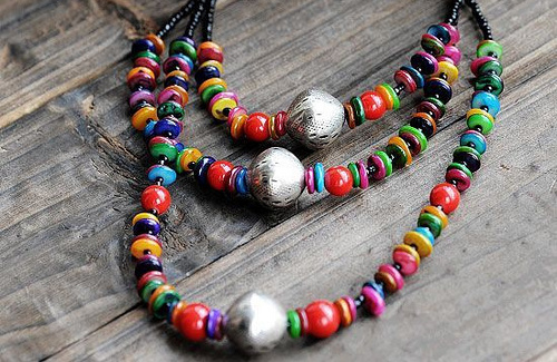 ...auch hier beim Schmuck. Wunderschöne rot/weiss getupfte Glasperlen (17mm lang).